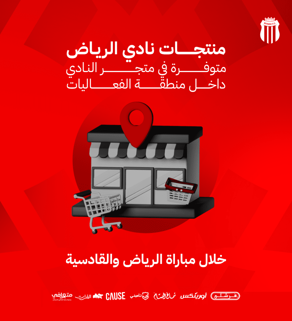 منتجـات نادي الرياض متـاحة في متجر النادي بمنطقة الفعاليـات في مباراة الرياض والقادسية